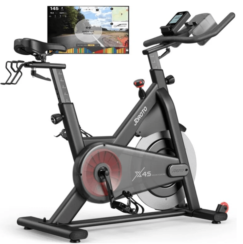 Le Joroto X4S séduit les sportifs exigeants. Son volant d’inertie de 15 kg, sa stabilité et son système de résistance magnétique fluide garantissent une expérience de pédalage réaliste et silencieuse. Idéal pour un usage intensif ou connecté via Zwift ou Kinomap.